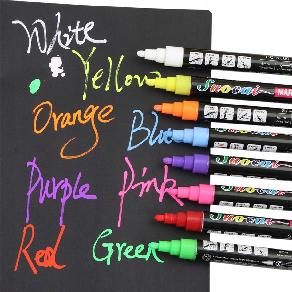 Metalowe kuleczki, które znajdują się w pisakach umożliwiają stałe mieszanie się farby dlatego przed użyciem należy dobrze wstrząsnąć. Po użyciu szczelnie zamknąć zatyczką