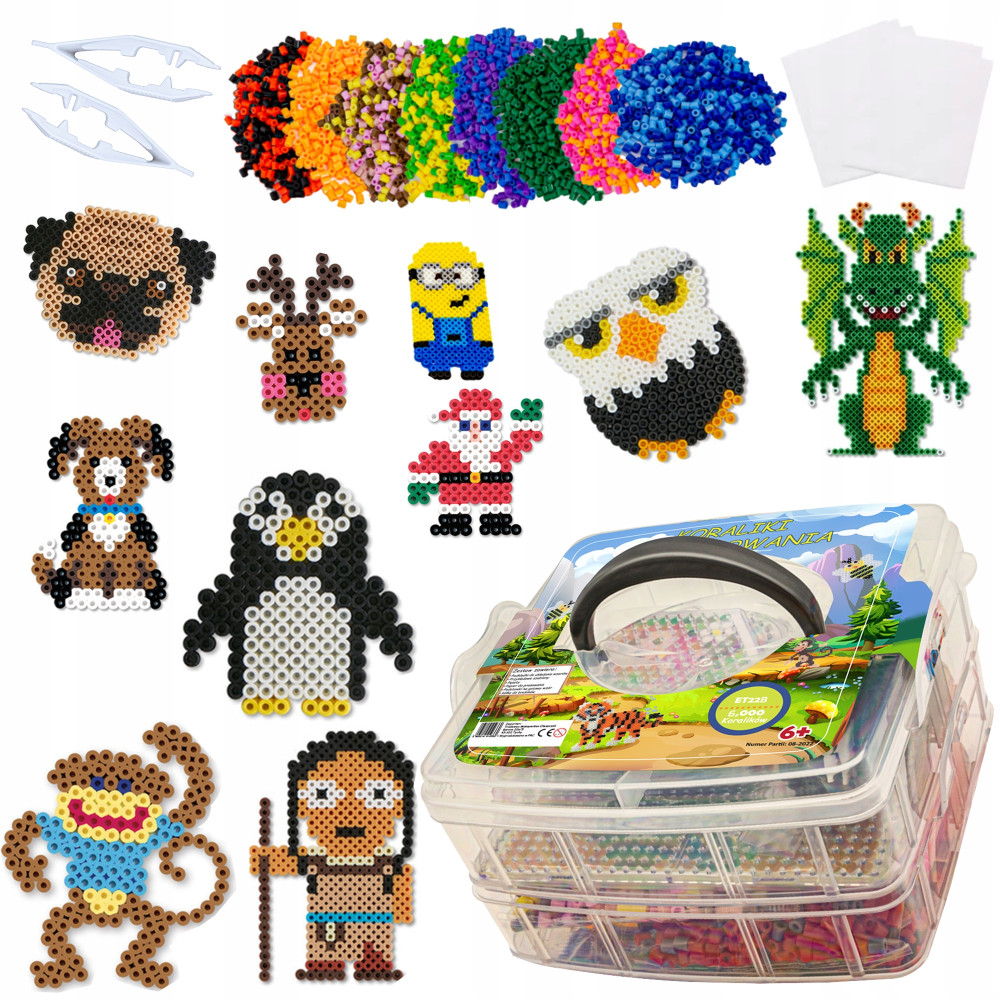 1. 6000 posortowanych koralików w plastikowym kuferku