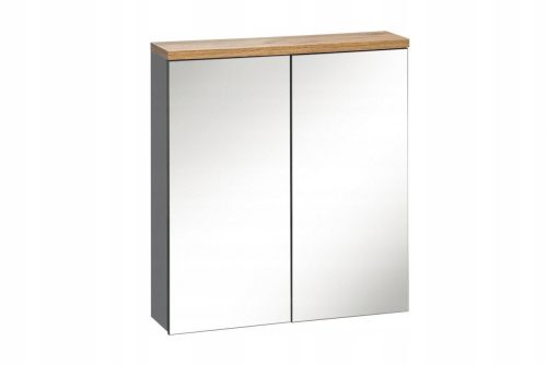 Szara Szafka Łazienkowa z Lustrem 60 cm Półki
