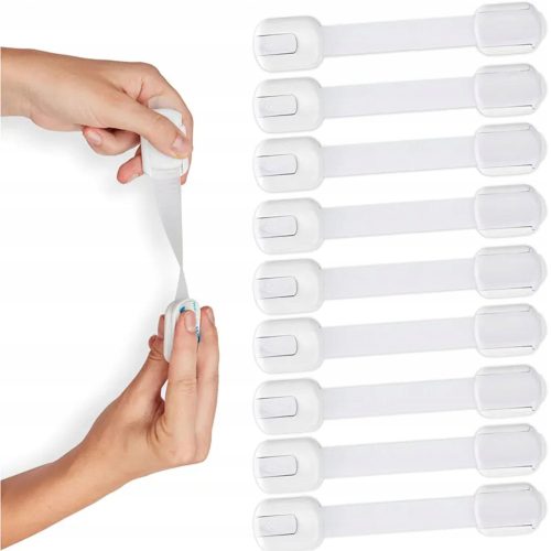 ZABEZPIECZENIE BLOKADA SZAFEK SZUFLAD BIAŁA - MOŻLIWOŚĆ REGULACJI DŁUGOŚCI - 10 SZTUK