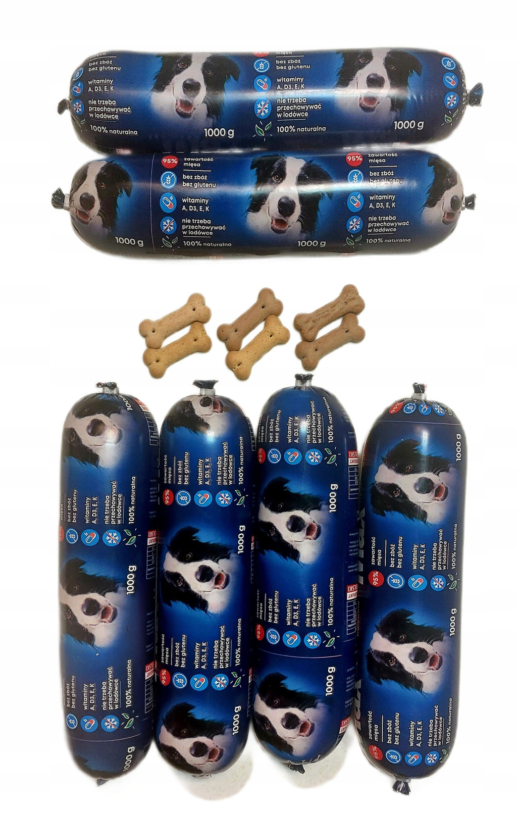 Pełnowartościowa karma dla dorosłych psów z wołowiną w postaci kiełbasy- batona 1000g. Karma o wysokiej zawartości mięsa i produktów pochodzenia zwierzęcego (min. 95% mięsa w tym 15% wołowiny) i bogatym składzie odżywczym (witaminy: A,E, K, D3)