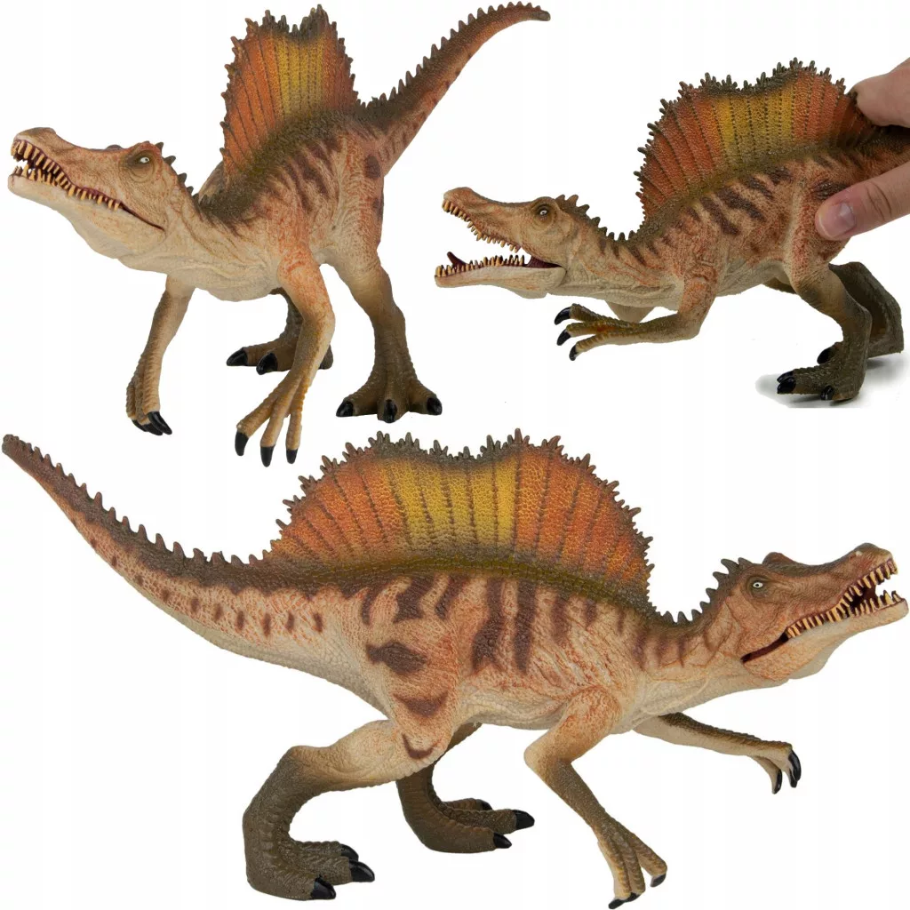 Figurka przedstawia dinozaura Spinozaur. Ma brązowo-beżową skórę i ostrą grzywę z kolcami na plechach. Figurka posiada ruchomą szczękę i przednie łapki.