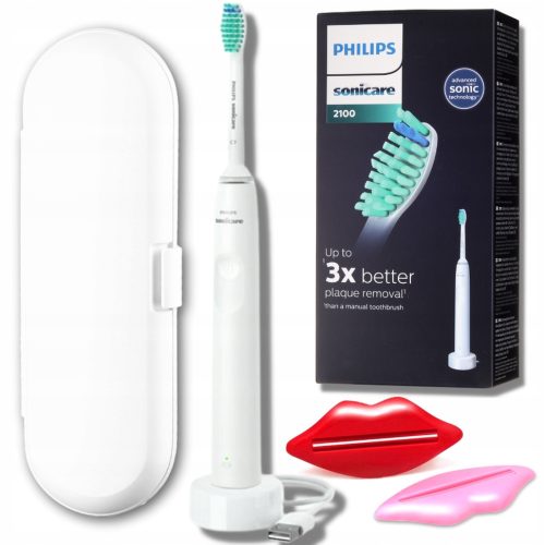 • W skład zestawu wchodzą: szczoteczka elektryczna z wbudowanym akumulatorem, podstawka do ładowania, oryginalna końcówka dołączona przez producenta, etui podróżne, 2 wyciskacze do pasty, oryginalne opakowanie oraz instrukcja obsługi.