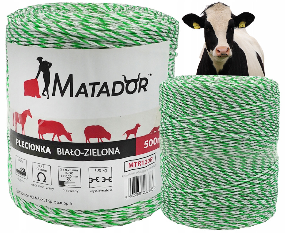 ✅ Wysokiej jakości plecionka Matador o długości 500 metrów do budowy ogrodzenia elektrycznego (tzw. pastucha).