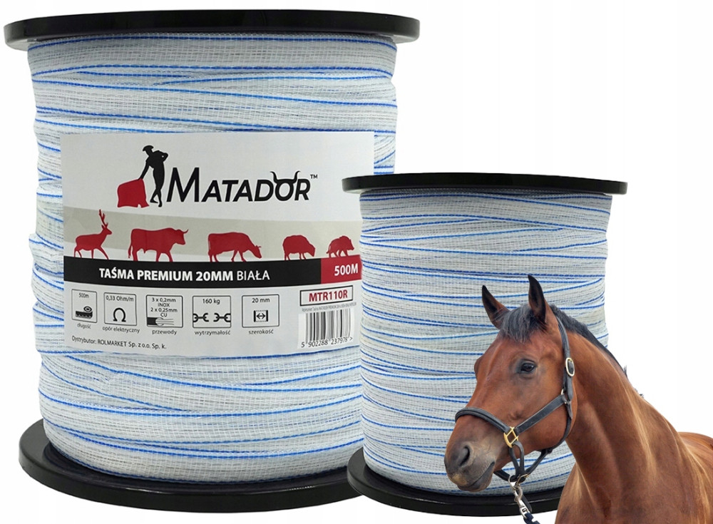 ✅ Wytrzymała taśma Matador Premium o długości 500 metrów i szerokości 2 cm do ogrodzenia elektrycznego (pastucha).