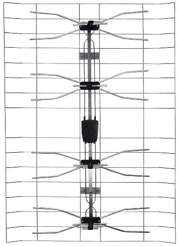 Zewnętrzna antena szerokopasmowa do odbioru cyfrowej telewizji naziemnej. Aluminiowe elementy anteny zostały anodowane galwanicznie, a stalowe - ocynkowane galwanicznie.