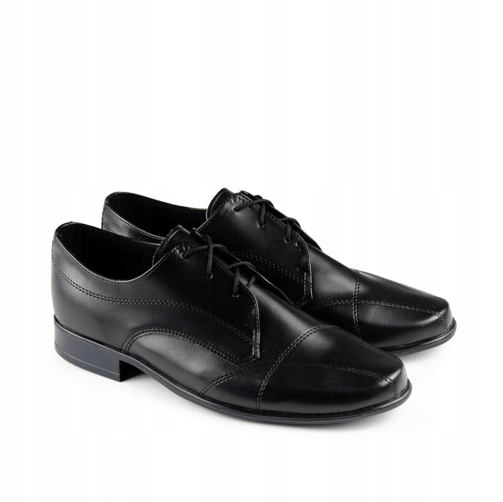 Klasyczne, czarne buty komunijne dla chłopca. Buciki dobrze wyprofilowane, dzięki czemu są bardzo wygodne. Zewnątrz obuwie wykonane z miękkiej skórki ekologicznej, natomiast wkładka ze skóry naturalnej. Uniwersalne buty, które będą pasować zarówno do eleganckiego garnituru komunijnego, jak i do klasycznej alby lub komży.
