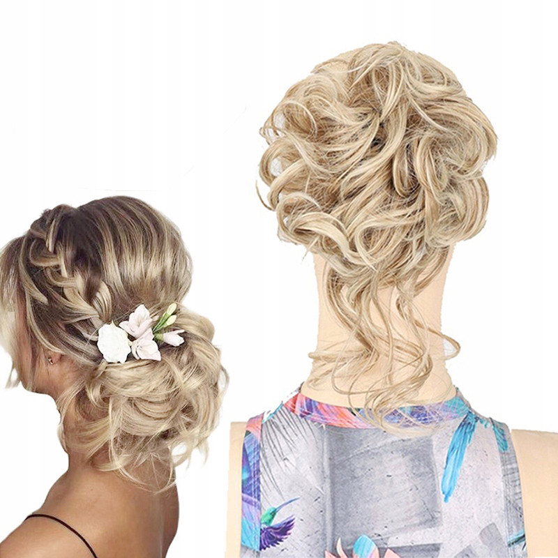 Chignon DETTAGLIATO con elastico, SPESSO, extension per capelli, riccioli, biondo
