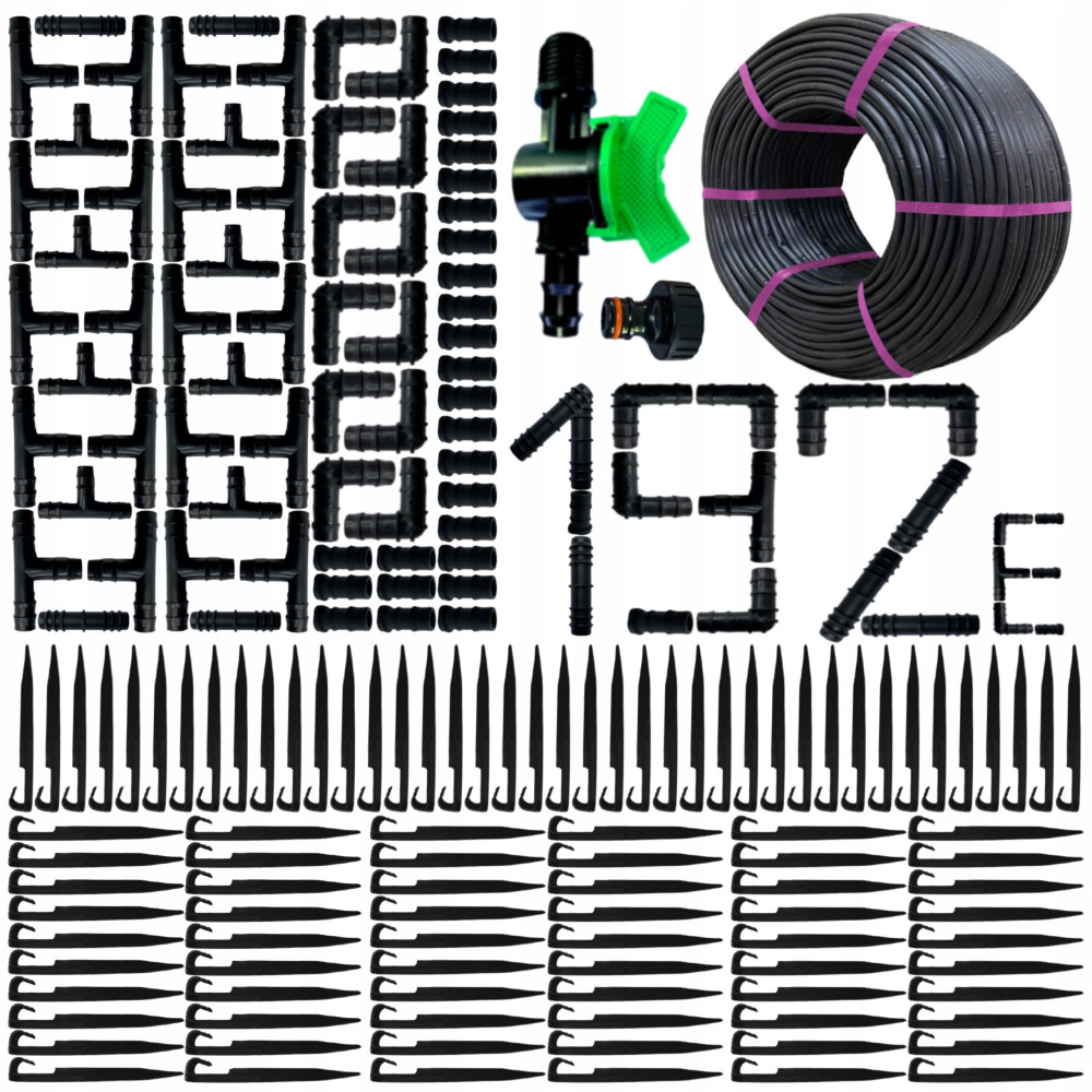 LINIA KROPLUJĄCA Nawodnienie Kropelkowe Wąż Zestaw 100m + 192 el XXL
