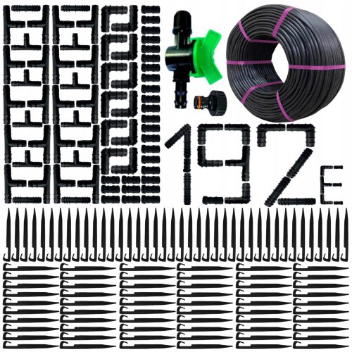 Zestaw zawiera linię kroplującą oraz 192 niezbędnych elementów montażowych, które pozwolą Ci poprowadzić ją tak jak tylko chcesz.