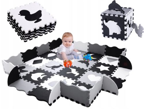 Duża piankowa mata puzzle o wymiarze 151x151 cm, z wyjmowanymi kształtami, która ma wiele praktycznych zastosowań. Zapewni Twojemu dziecku komfort podczas zabawy oraz nauki raczkowania!
