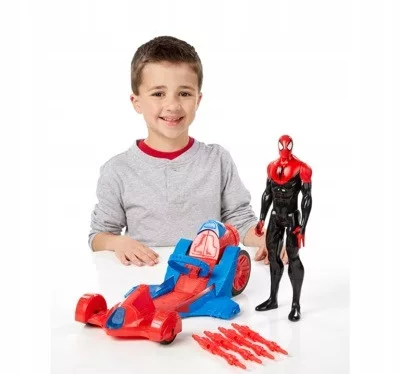 Oficjalna zabawka filmu SPIDERMAN. Wyprodukowana przez HASBRO na licencji MARVEL. Posiada ruchome ręce i nogi. Dodatkowo w zestawie znajduje się pojazd Turbo Racer z 4 wyrzutniami.