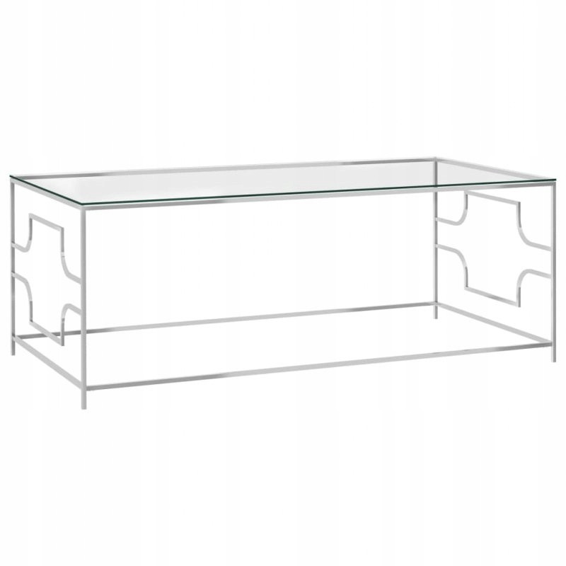 Stolik kawowy, srebrny, 120x60x45 cm, stal nierdzewna i szkło