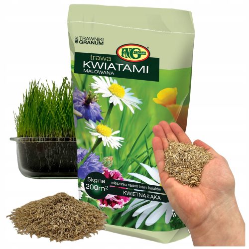 ⭐Trawa KWIATAMI MALOWANA to specjalnie skomponowana mieszanka nasion traw i różnokolorowych kwiatów, przeznaczona do zakładania łąki kwietnej.