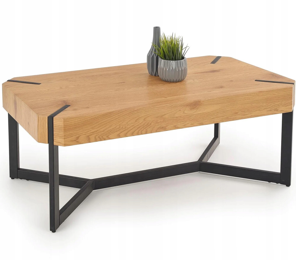 Industrialny Stolik Kawowy do Salonu Loft LAVIDA Dąb Złoty Czarny Ława Prostokątna Halmar