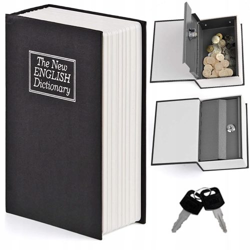☑ Kasetka sejf w kształcie książki, słownika języka angielskiego. Doskonały na kosztowności, pieniądze lub dokumenty. Można również w niej schować leki przed pociechami. Sejf jest świetnie ukryty w realistycznie wyglądającym słowniku - książce.