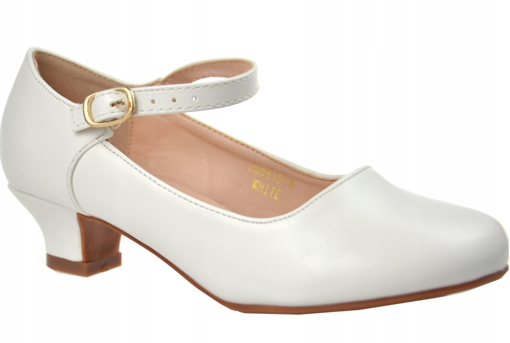 SCARPE da Comunione, tacco opaco, PELLE BIANCA r34