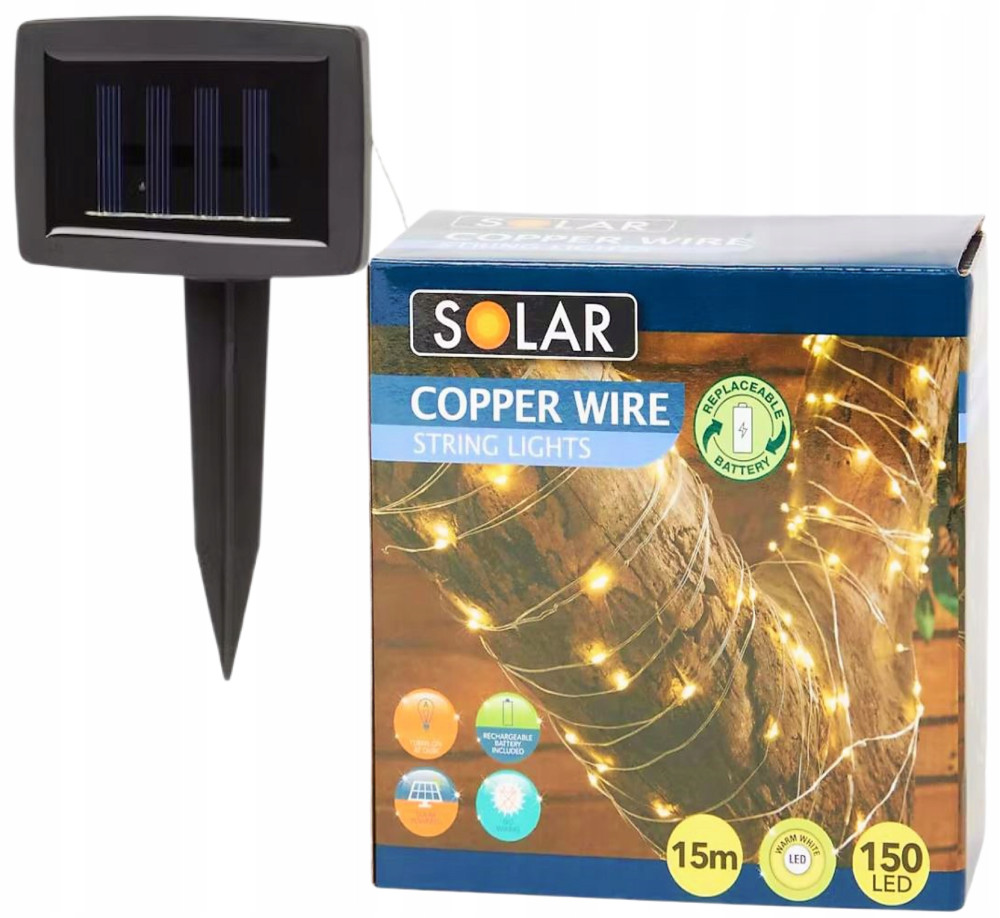 Solarne, dekoracyjne oświetlenie z drutu miedzianego 150 LED
