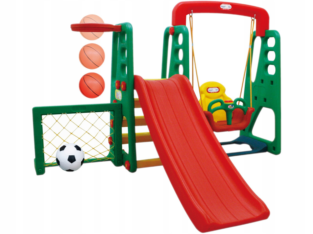 PLAC ZABAW 4w1 ZJEŻDŻALNIA HUŚTAWKA KOSZ BRAMKA