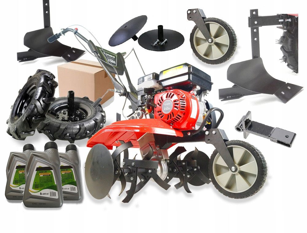 Możliwość zastosowania dodatkowego osprzętu: ZESTAW DO ORANIA, Pług, Obsypnik, Kopaczka do warzyw, Kultywator, Lemiesz do odśnieżania, Przyczepka, Brony, Pielnik itd.