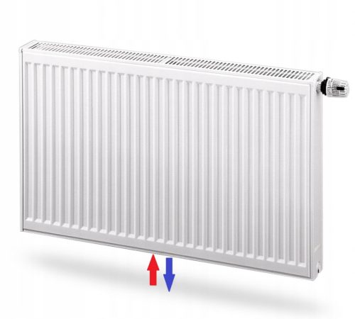 Opis:Purmo Ventil Compact (CV), Purmo Ventil Compact M (CVM) Purmo Plint to pokojowe stalowe grzejniki płytowe z podłączeniem dolnym z boku lub w środku. Stanowią idealne wyposażenie domowej instalacji grzewczej. Te pokojowe grzejniki polecane są jako urządzenia grzewcze montowane w sypialniach, pokojach dziennych, kuchniach. Montaż jest możliwy zarówno na ścianie jako grzejniki wiszące, opcjonalnie można uzyskać grzejniki stojące montując je na podłodze na specjalnych stojakach. Pokojowe grzejniki Purmo posiadają powierzchnie boczne obudowane osłonami oraz powierzchnię górną przykrytą osłoną typu grill. Dostępne są w szerokim zakresie typów i rozmiarów, dlatego łatwo dobrać grzejnik do każdej wielkości pomieszczenia. Grzejniki typu CV, CVM oraz Plint wyposażone są w cztery boczne i dwa dolne otwory przyłączeniowe z gwintem wewnętrznym 1/2?.