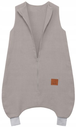 Muślin double gaze to miękka i delikatna tkanina, idealna dla wrażliwej skóry dzieci. Śpiworek wykończony jest mięciutkimi i elastycznymi ściągaczami w kolorze jasnoszarym, które idealnie dopasowują się do nóżek dziecka.
