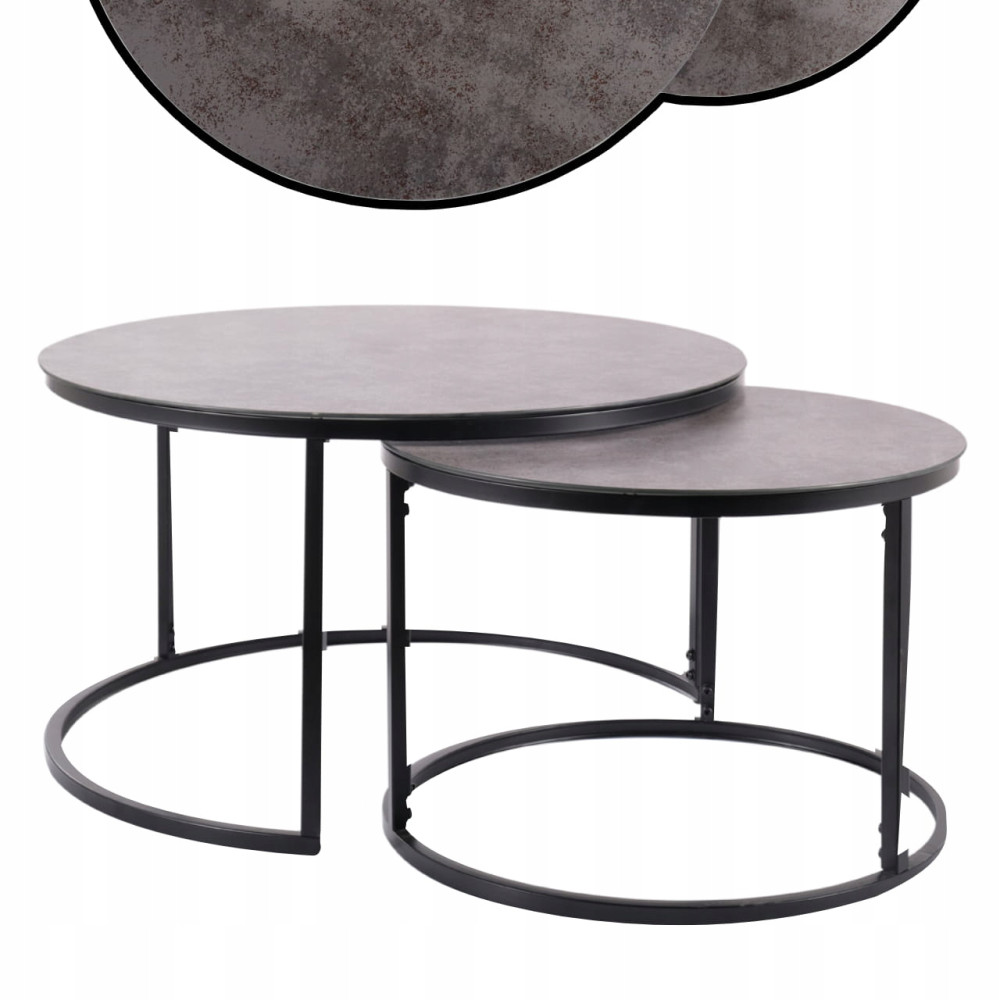 Matowy zestaw Atlanta A to dwa szare stoliki kawowe w czarnej ramie. Ten wyjątkowy komplet doskonale współgra z nowoczesną przestrzenią w stylu loft, a także zawsze modną klasyką. Połączenie szklanego blatu z matową czernią stelaża podkreśla modernistyczny design. Blaty ław zostały wzbogacone modnym efektem szarego marmuru. Stelaże zostały tak skonstruowane, by zapewniać stabilność i funkcjonalność użytkowania. Ten interesujący projekt nada wnętrzu klasy i charakteru. Mebel idealnie sprawdzi się na co dzień, jak i podczas wizyty gości.