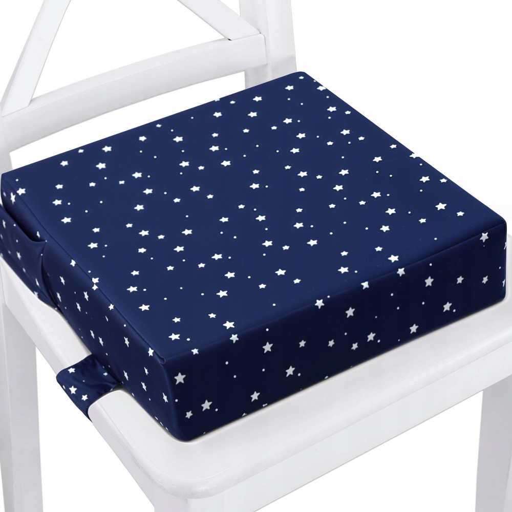 Siedzisko na krzesło dla dzieci to wygodna poduszka, która pomaga sięgnąć dziecku do stołu. Jest to idealna alternatywa, gdy dziecko jest zbyt duże na krzesełko do karmienia, a zbyt małe na standardowe krzesło stołowe. Jej uniwersalny rozmiar sprawia, że pasuje do krzeseł o standardowym wymiarze. Wszyte paski umożliwiają przymocowanie poduszki do krzesła tak, aby się nie przemieszczała