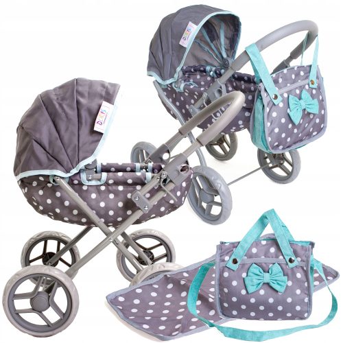 WÓZEK dla lalek Doris głęboki gondola + TORBA do wózka TOREBKA + przewijak