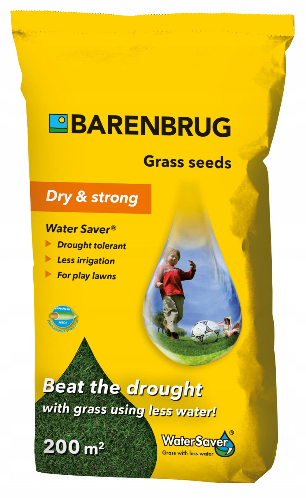 Kiedy inne trawy wysychają, trawa Water Saver pozostaje zielona. Opracowane przez dział badawczy Barenbrug odmiany zawarte w mieszance Water Saver charakteryzują się wyjątkową odpornością na przesuszenie i upał. (Dry & Strong)