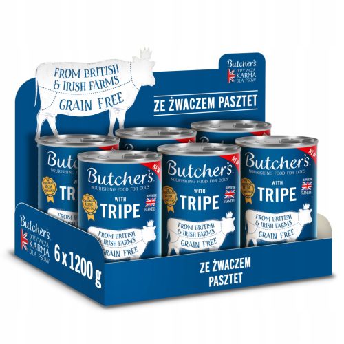 Zestaw mokrej karmy dla psa Butcher's Original Tripe ze żwaczem pasztet 1200g x 6 sztuk