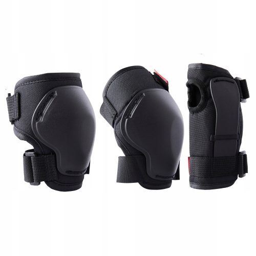 Zestaw ochraniaczy - 6 elementów na łokcie, kolana i nadgarstki - na rolki, deskorolkę, hulajnogę dla dzieci 6 - 10 lat od 25 - 50kg Junior - czarne.