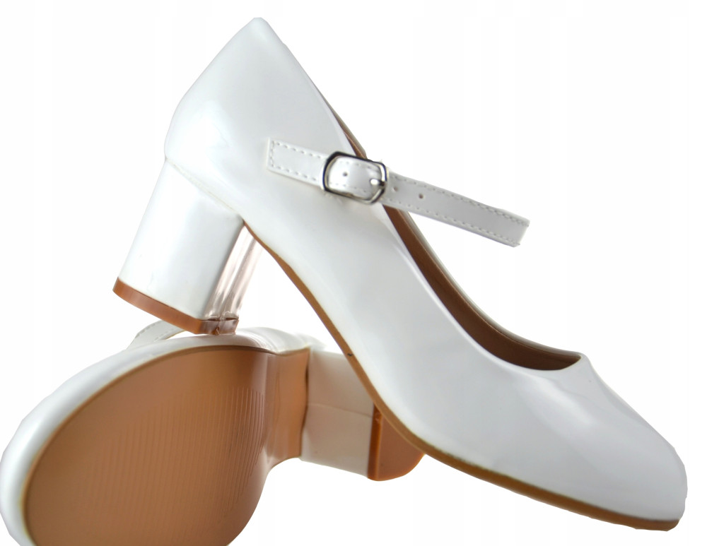 Lakier PANTOFELKI WYSOKI Obcas KOMUNIJNE BIAŁE