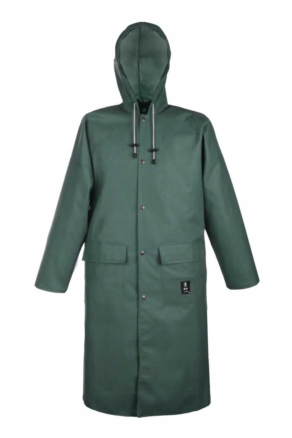 Płaszcz zapinany na napy, z kapturem i dwiema bocznymi kieszeniami przykrytymi patkami. Model produkowany z wodoochronnej tkaniny Plavitex, przeznaczony do użytku w niesprzyjających warunkach pogodowych. Zapewnia skuteczną ochronę przed wiatrem i deszczem. Technika obustronnego zgrzewania zwiększa wytrzymałość szwów. Produkt spełnia standardy europejskich norm: EN ISO 13688 i EN 343.