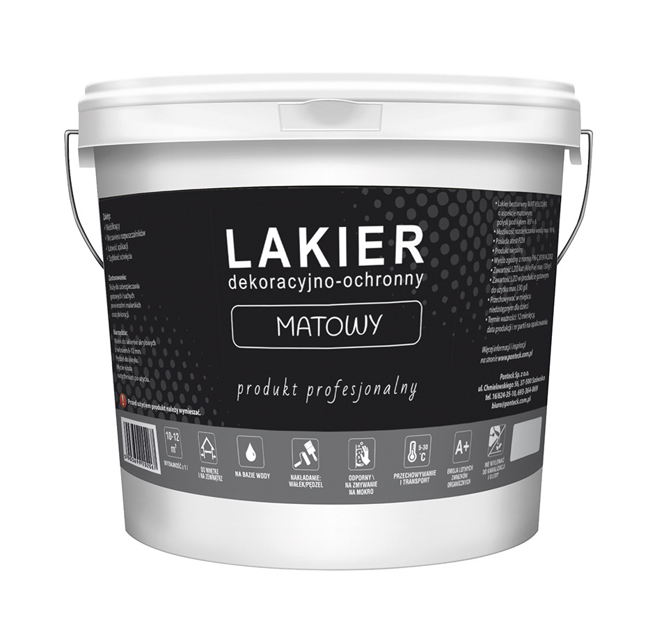 Bezbarwny MATOWY lakier akrylowy na bazie wody, służący do zabezpieczania pomalowanych powierzchni, tynków oraz systemów dekoracyjnych, tapet itp.