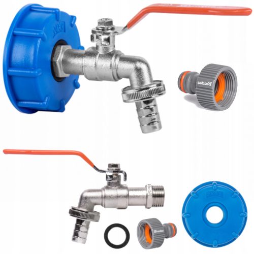 Zestaw - IBC nakrętka S60x6 kran z wyjściem na GZ 3/4", wtyk na wąż 1/2" i nypel
