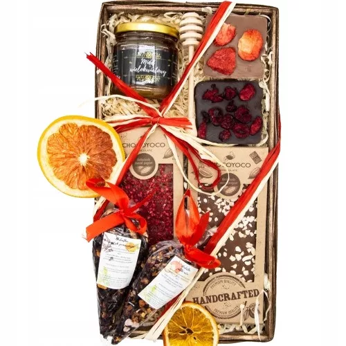 • Wszystkie produkty znajdują się w ręcznie wykonanym koszyku z certyfikowanego (FSC) drewna 35x18x9 cm
