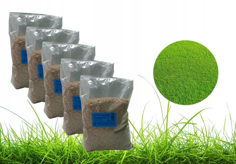 Trawę sprzedajemy w 5 woreczkach po 1kg, dzięki czemu nadmiar nie wysianej trawy może zostać wykorzystany w późniejszym okresie.