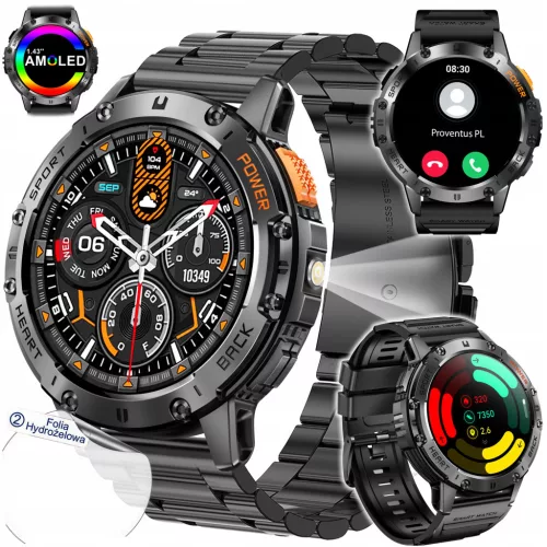 SMARTWATCH ZEGAREK MĘSKI AMOLED LATARKA ROZMOWY SMS POMIARY IP68 530MAH PL