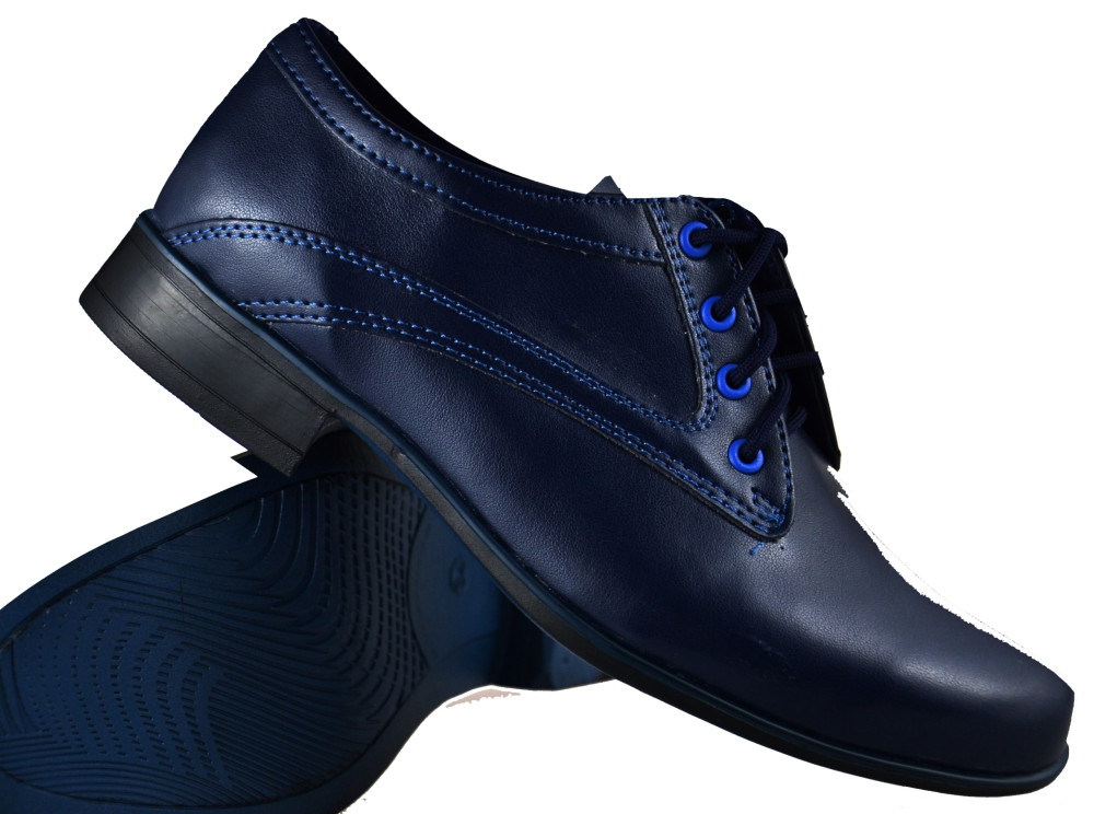 POLSKIE Komunia Pantofle Skóra Chłopiec Granat