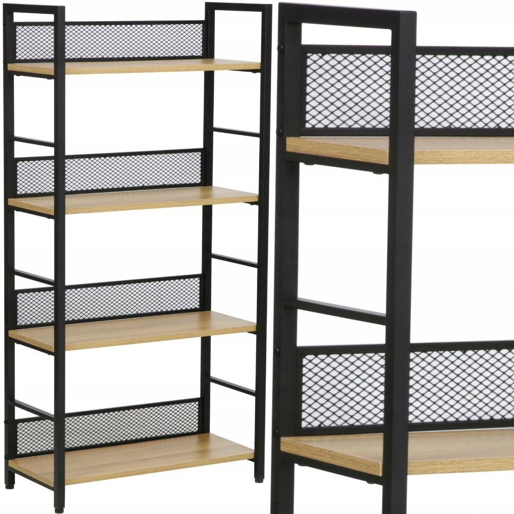 REGAŁ METALOWY 4 PÓŁKI industrialny loft RAW R4 PÓŁKA DĄB + CZARNY STELAŻ