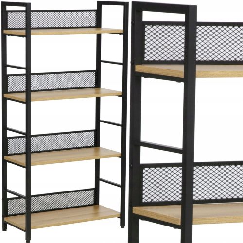 Dzięki połączeniu metalu z drewnem, regał ten emanuje nowoczesnym urokiem, jednocześnie wpisując się w różnorodne aranżacje wnętrz. Idealnie nadaje się do przechowywania książek, ozdób, czy nawet kolekcji, dodając pomieszczeniu charakteru.