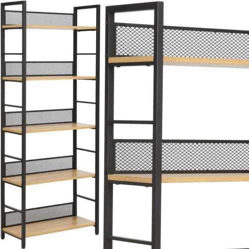 REGAŁ METALOWY 5 PÓŁEK industrialny loft RAW R5 PÓŁKA DĄB + CZARNY STELAŻ