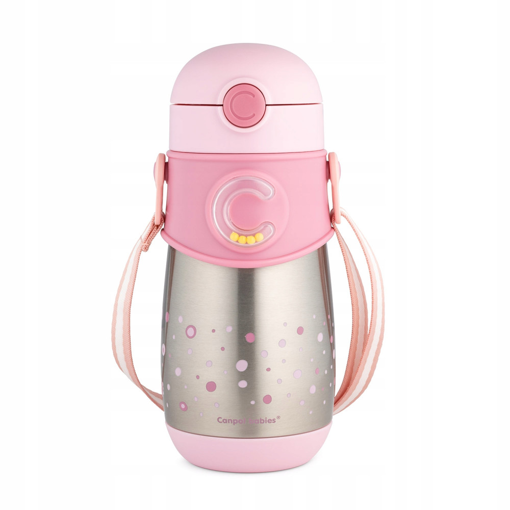 Bidon termiczny to doskonały towarzysz spacerów i podróży. Utrzymuje temperaturę płynu. Ma praktyczny pasek, dzięki któremu dziecko może zawiesić go sobie na szyi.