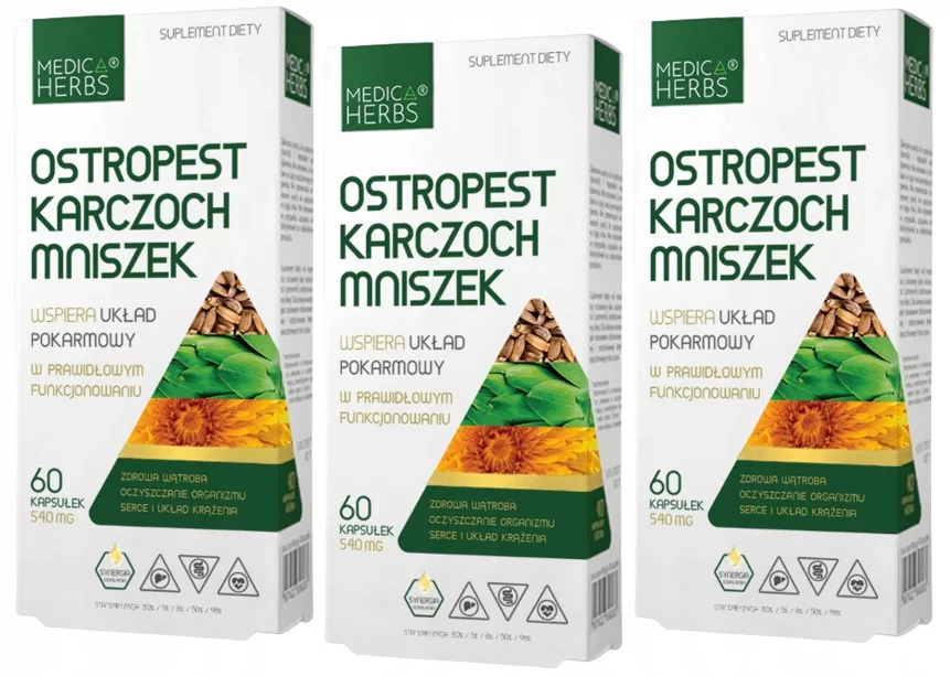 Zestaw OSTROPEST KARCZOCH MNISZEK Medica Herbs - 3 sztuki - łącznie 180 tabletek Trawienie