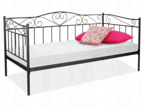 Jednoosobowe łóżko do sypialni lub pokoju nastolatków. Czarny kolor łóżka doda do wnętrza loftowego charakteru. Metalowy zagłówek posiada ciekawe zdobienia składające się w esy zwieńczone sercem na samym środku.