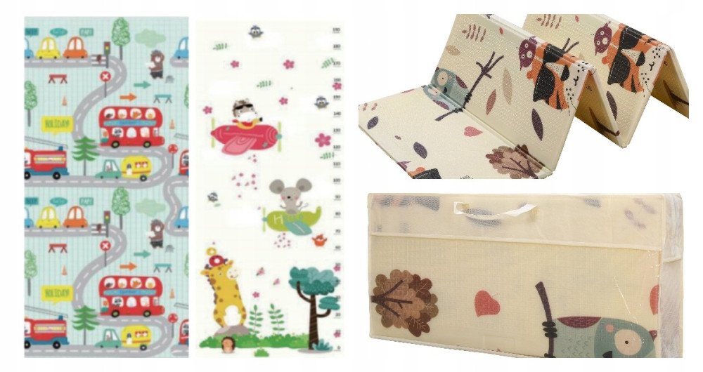 Na każdej ze stron znajduje się inny wzór. Są one estetyczne i przyjemne dla oka malucha. Gwarantuje to że twoje dziecko nie znudzi się zabawą. W dowolnym momencie możesz przenieść dziecko do innej krainy odwracając matę na drugą stronę.