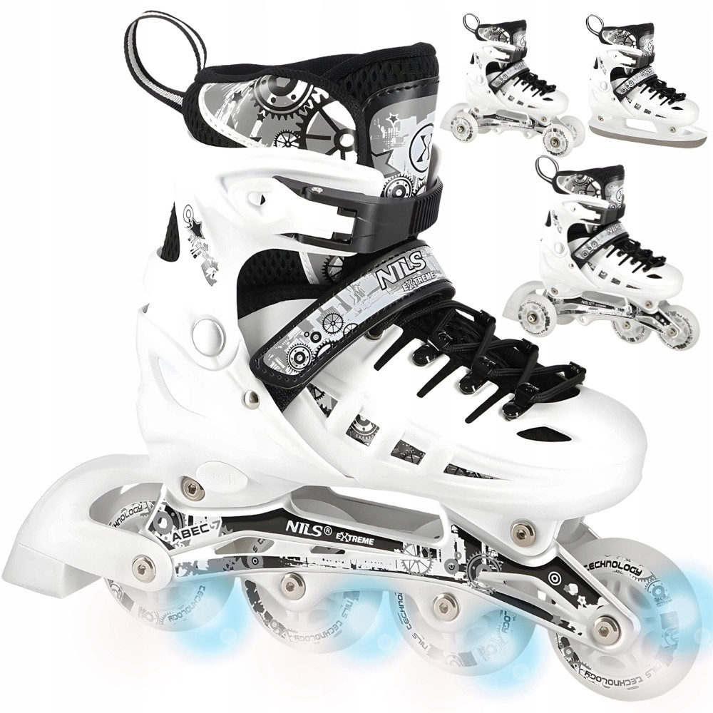 NH10905 Set Nils Extreme to łyżwy przeznaczone dla pasjonatów jazdy. Produkt oferuje 4 możliwości konfiguracji. Są to: łyżwy, łyżworolki, wrotki oraz rolko-wrotki.