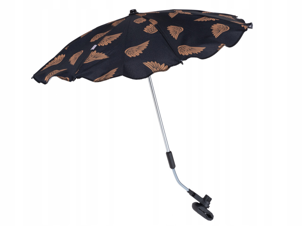 PARASOLKA DO WÓZKA DZIECIĘCEGO Z FILTREM UV CZARNA ZE ZŁOTYMI SKRZYDEŁKAMI