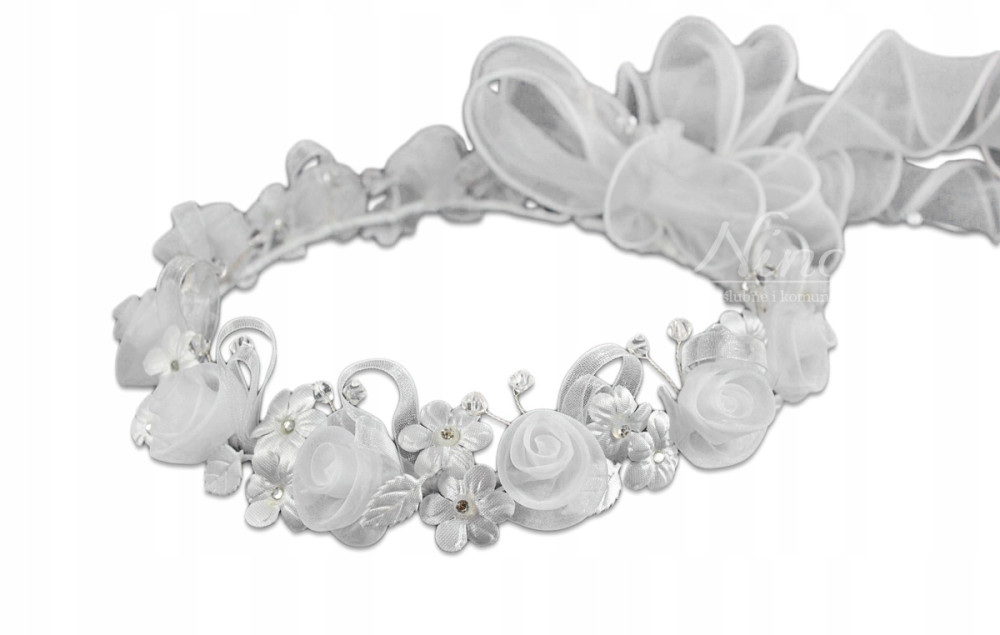Wianki komunijne ręcznie wykonane, z wysokiej jakości materiałów - białych kwiatków, listków i koralików.
